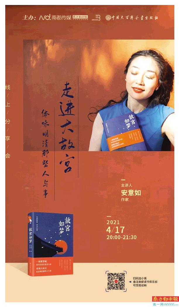 故宫,一直是阅读爱好者非常关注的话题。4月17日晚,畅销书作家安意如携新书《故宫如梦》作客南都读书俱乐部,做了线上分享,她带领读者回顾故宫历史,以她独特的视角,讲述明清那些人和事儿。