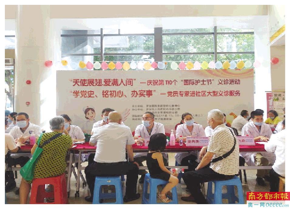 活动期间,罗湖区人民医院老年病院、综合二、药学等党支部和罗湖医院集团社管中心翠岭党支部的20余名专家、医护人员给居民提供义诊服务,包括新冠疫苗接种咨询、健康咨询、健康宣教、测量血压血糖、签约家庭医生和免费体验推拿等。