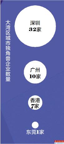 榜单显示,中国17%(50家)的独角兽总部设在粤港澳大湾区。从领域看,50家粤港澳大湾区的独角兽企业集中在电子商务、金融科技、人工智能、物流和健康科技等多个方面。胡润表示,“数量占中国17%的独角兽总部坐落在大湾区,大湾区的独角兽占比应该还会继续增长。”