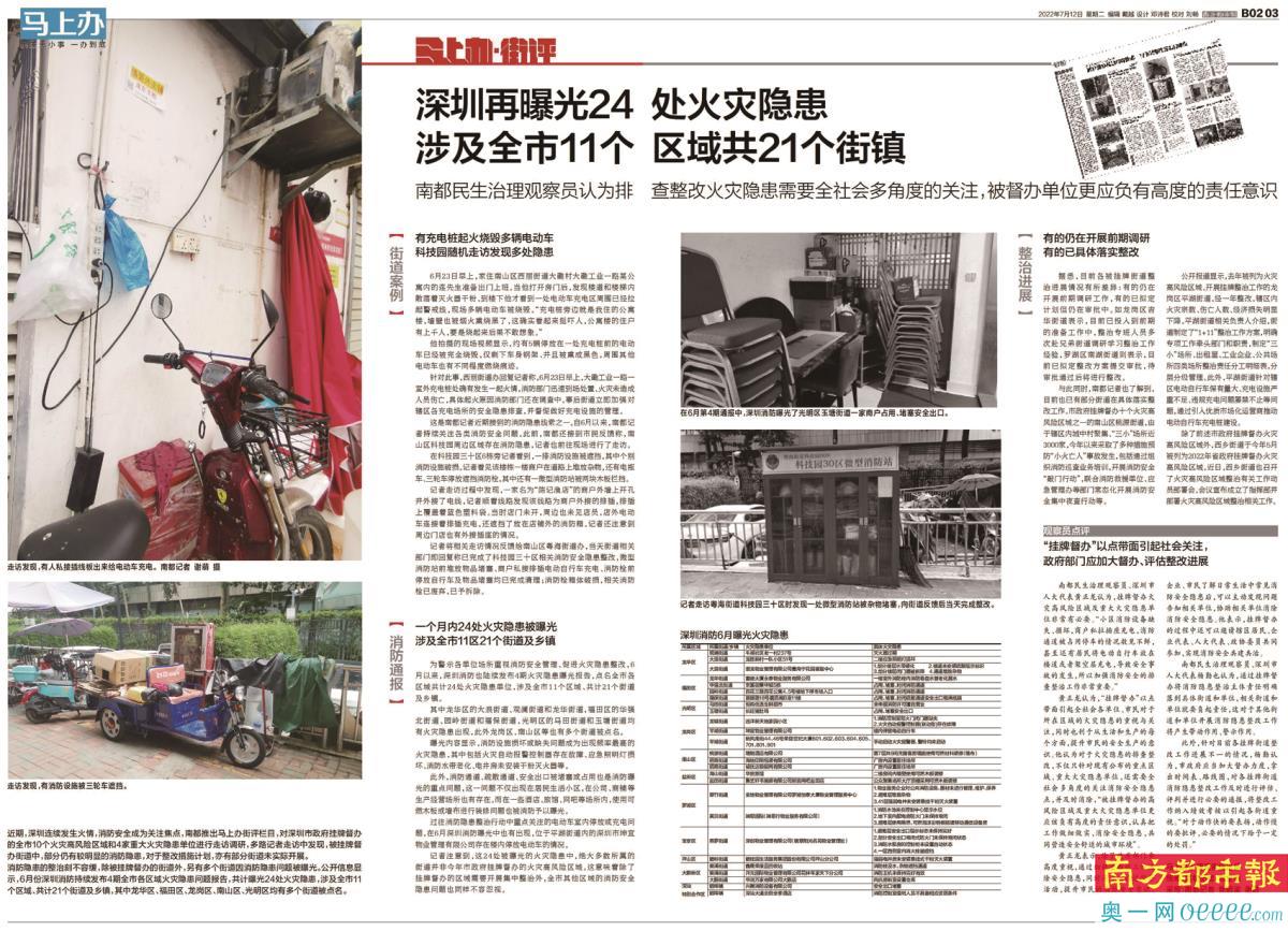 而今年6月份深圳消防持续发布4期全市各区域火灾隐患问题报告,共计曝光24处火灾隐患,涉及全市11个区域、共计21个街道及乡镇,其中20个不在今年市政府挂牌督办区域之列。