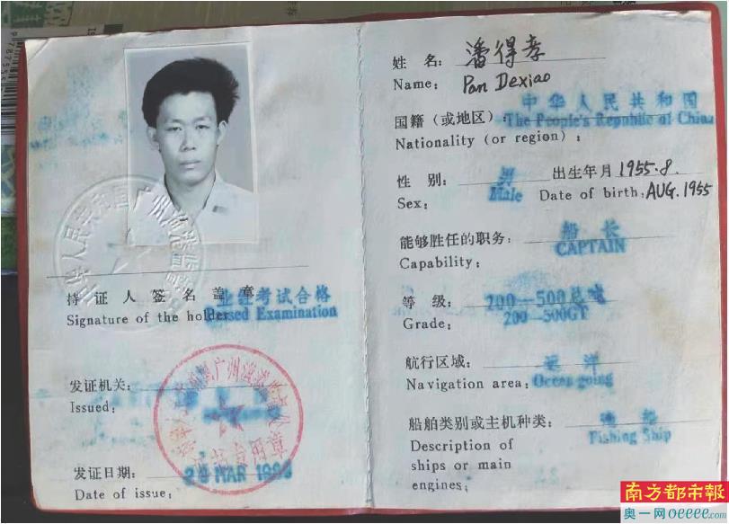 “不积跬步,无以至千里”,67岁的潘得孝用这句话作为开头,介绍着自己的传家宝——远洋渔轮船长适任证书及先进生产工作者证书。他所说的“至千里”,指的是去过太平洋、印度洋与大西洋。而何以至千里?传家宝印证着他曾经的多重身份:普通船员、二副、大副、近海船长、远洋船长。
