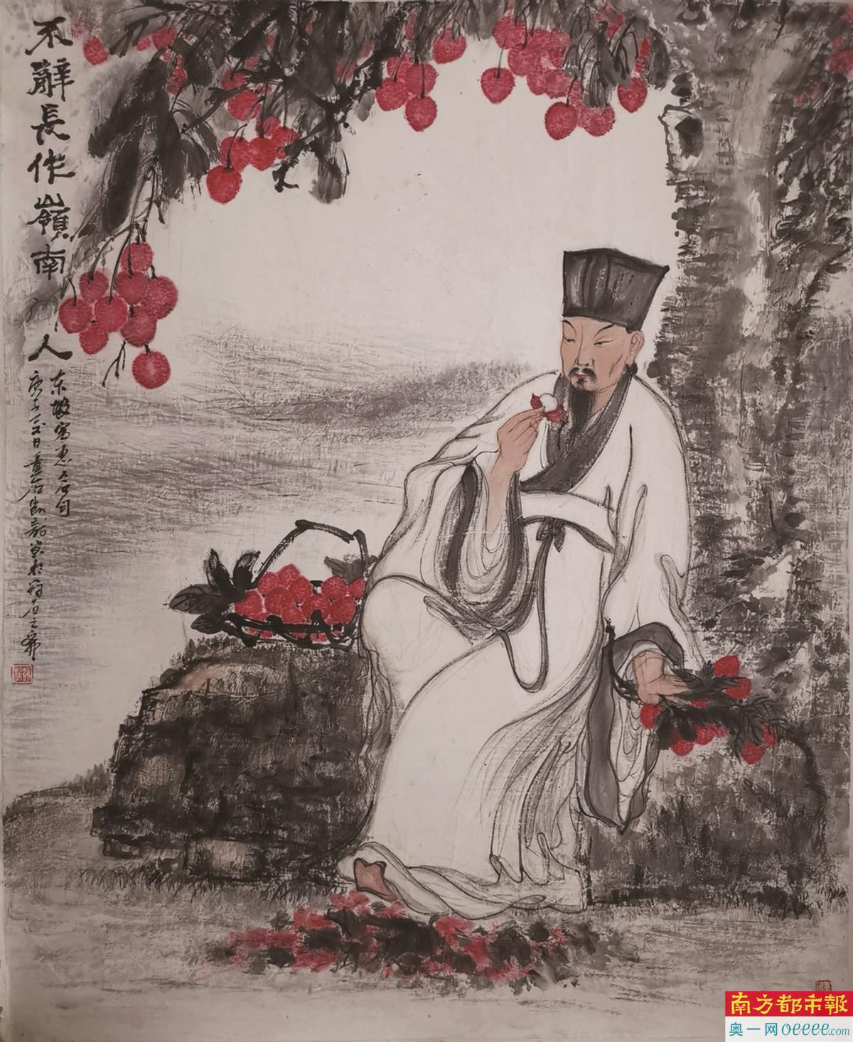 “很多人都非常崇拜苏轼,我也不例外。”林凯龙从不掩饰这份情怀,在他眼中,苏轼旷达、博学,“特别是在逆境中能一直保持积极乐观的人生态度”。林凯龙多年研读苏轼诗文,探究其思想体系,还通过系统考察苏轼的出生地和寓迹,加深对他人生跌宕起伏的理解。他告诉南都记者,“我画苏轼时更注重神情、场景和境界三者的表达,不太拘泥于一个具体形象。主要想体现苏东坡旷达潇洒、不拘一格的人格魅力,从画里传达苏轼的观点和看法。”
